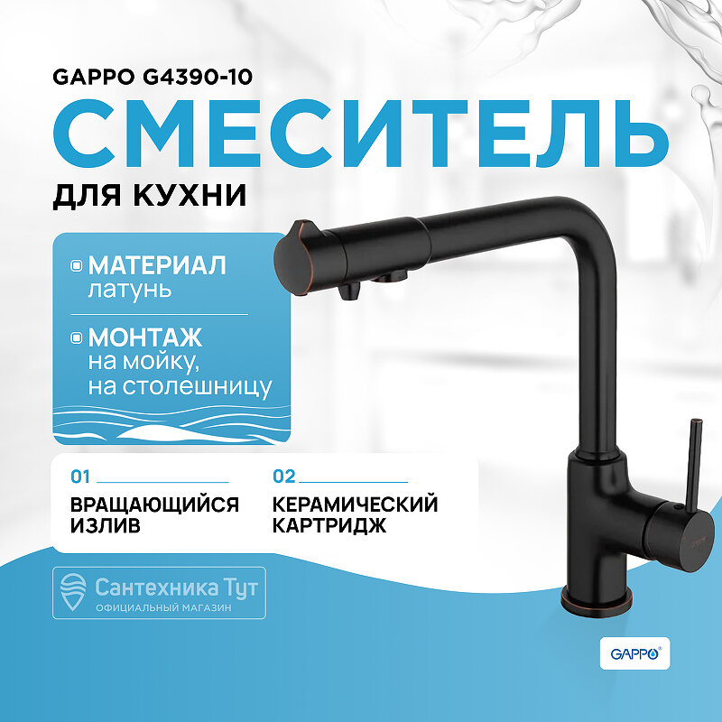 СохранитьСмеситель для кухни 35к G4390-10 GAPPO с вых. для питьевого фильтра, черный интересное:
