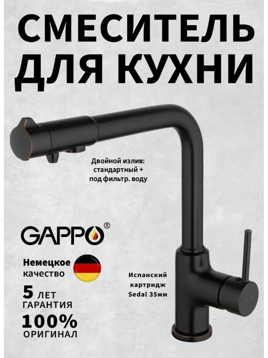 Смеситель для кухни 35к G4390-10 GAPPO с вых. для питьевого фильтра, черный*