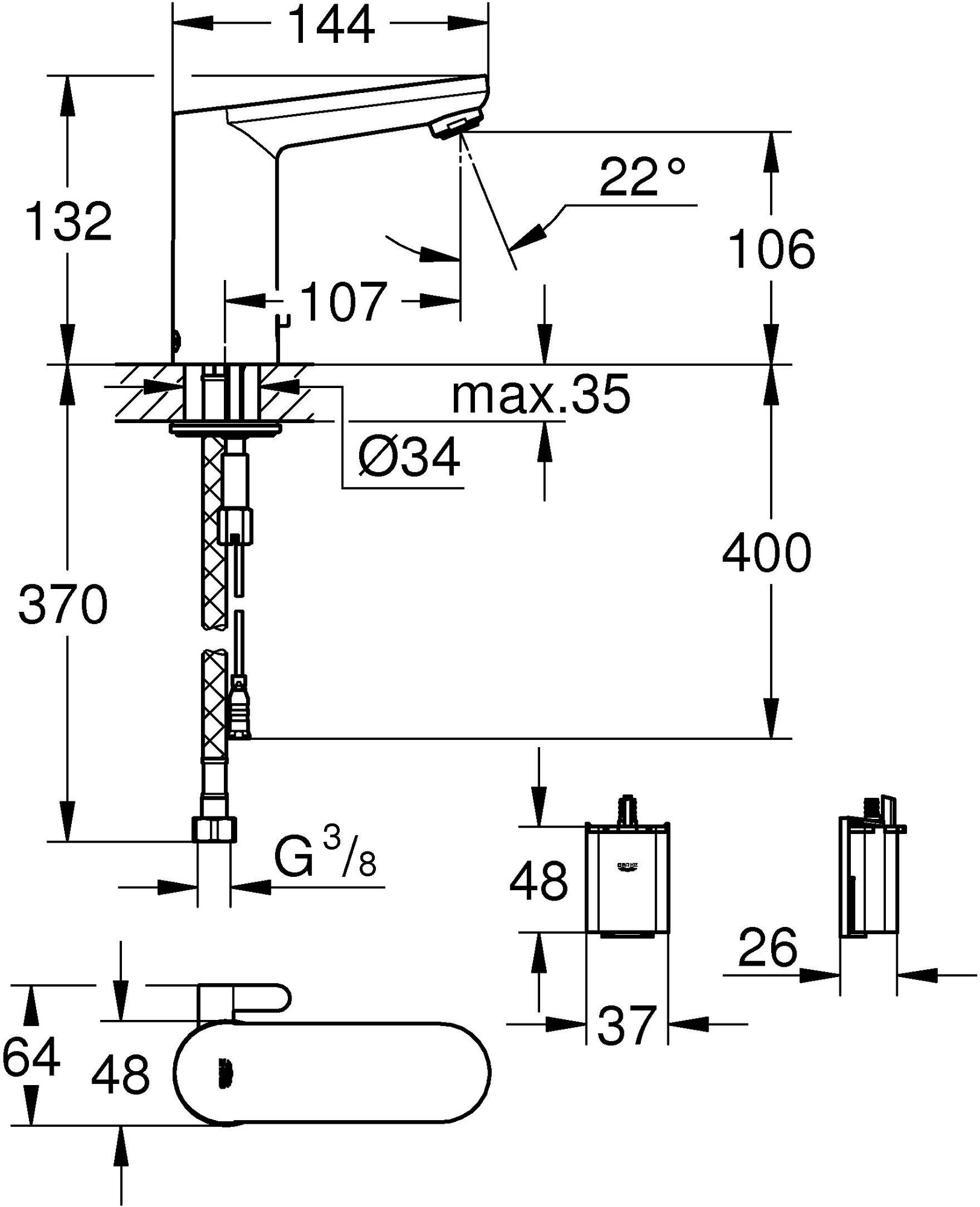 Смеситель для раковины GROHE Eurosmart Cosmopolitan E инфракрасный, с регулировкой температуры, питание от батареи 6V, хром (36327001)