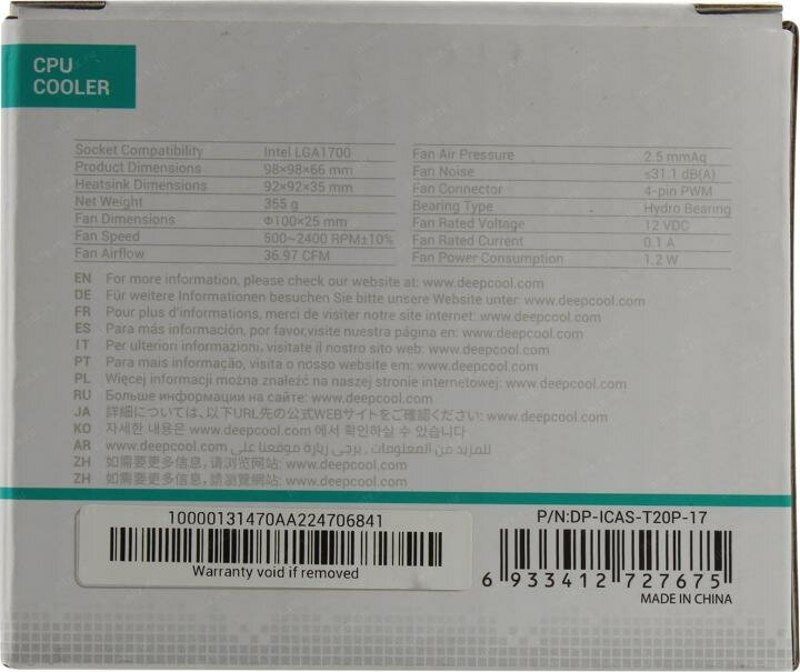 Кулер DEEPCOOL (DP-ICAS-T20P-17)