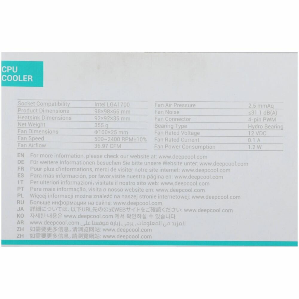 Вентилятор для процессора Deepcool THETA 20 PWM 1700 (LGA1700, 4pin, 31,1dB, Al, 65W, винты) (THETA 20 PWM 1700)