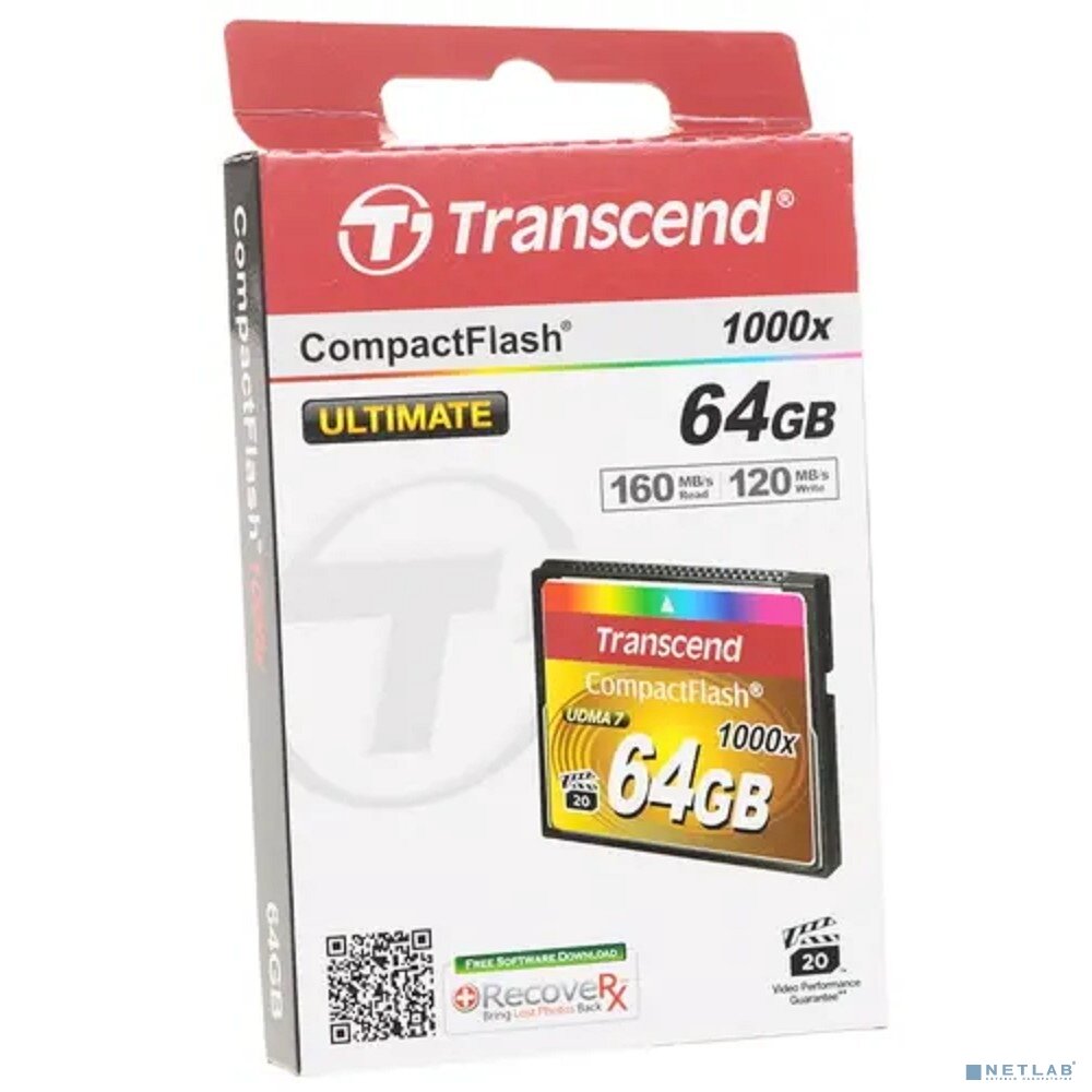 Карта памяти Transcend Compact Flash 64 ГБ, R/W 160/120 МБ/с (TS64GCF1000)