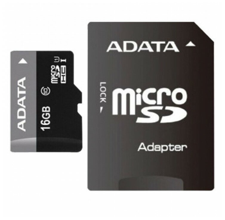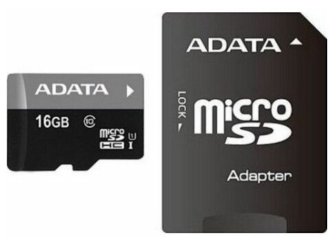 Карта памяти ADATA microSDHC 16 ГБ Class 10, UHS-I, адаптер на SD
