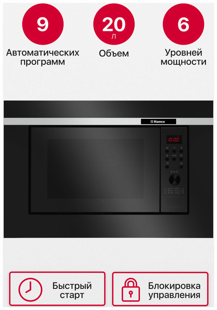 Встраиваемая микроволновая печь СВЧ Hansa AMG 20 BFH интересное: