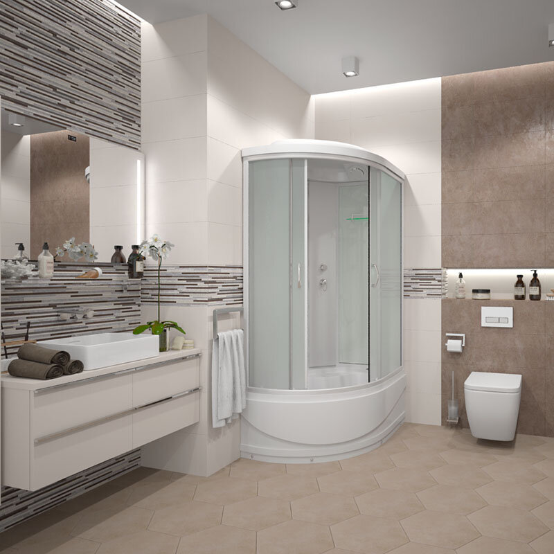 | Плюсы: | Наличие вентиляции и тропического душа, латунный смеситель. |