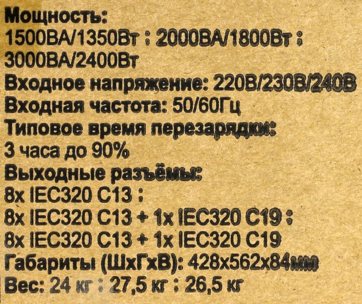 | Выходная мощность (полная) | 3000 ВА |