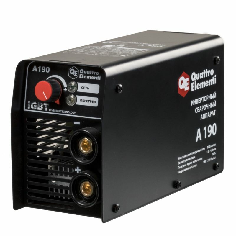 Аппарат электродной сварки, инвертор QUATTRO ELEMENTI A 190 (190 А, ПВ 60%, до 4.0 мм, 3.6 кг, 160-240 В)