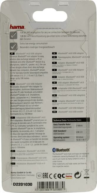 Адаптер USB Hama Nano 4.0 Bluetooth 4.0 class 1 интересное: