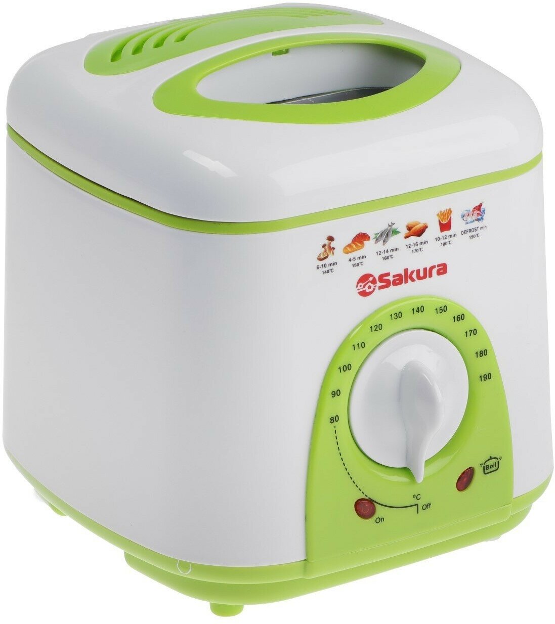 Купить Фритюрница SA-7654GR, 950 Вт, 750 мл, антипригарное покрытие, фильтр, бело-салатовая