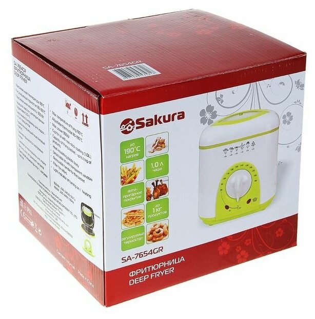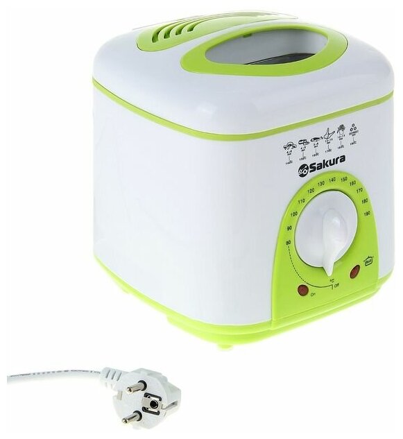 Фритюрница SA-7654GR, 950 Вт, 750 мл, антипригарное покрытие, фильтр, бело-салатовая интересное: