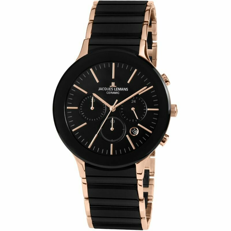 Наручные часы Jacques Lemans 1-1854C, мужские кварцевые керамические часы Жак Леман с хронографом и датой на комбинированном браслете (сталь и керамика)