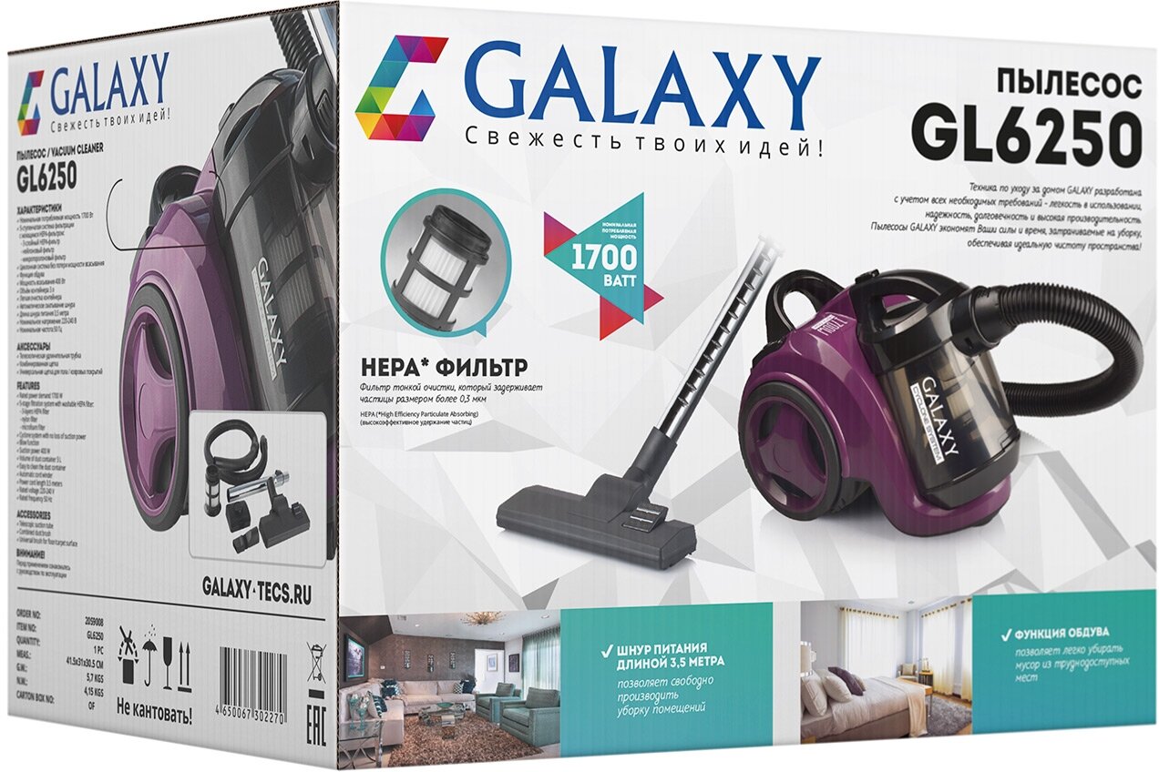 Galaxy Пылесос Galaxy GL 6250, 1700/400 Вт, 3 л, нера-фильтр, фиолетовый