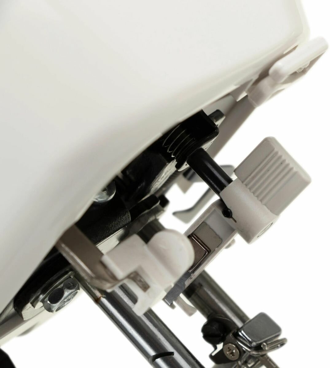 | Минусы: | неудобство работы с рычягами нитковдевателя иостановки ткани |