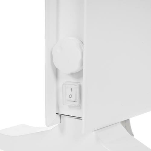 Есть какой-то регулятор мощности, крутится, но вроде бы он ступенчатый. Белый, аккуратный. Если снять заднюю панель, можно повесить на стену. Монолитный (кроме задней панели). |