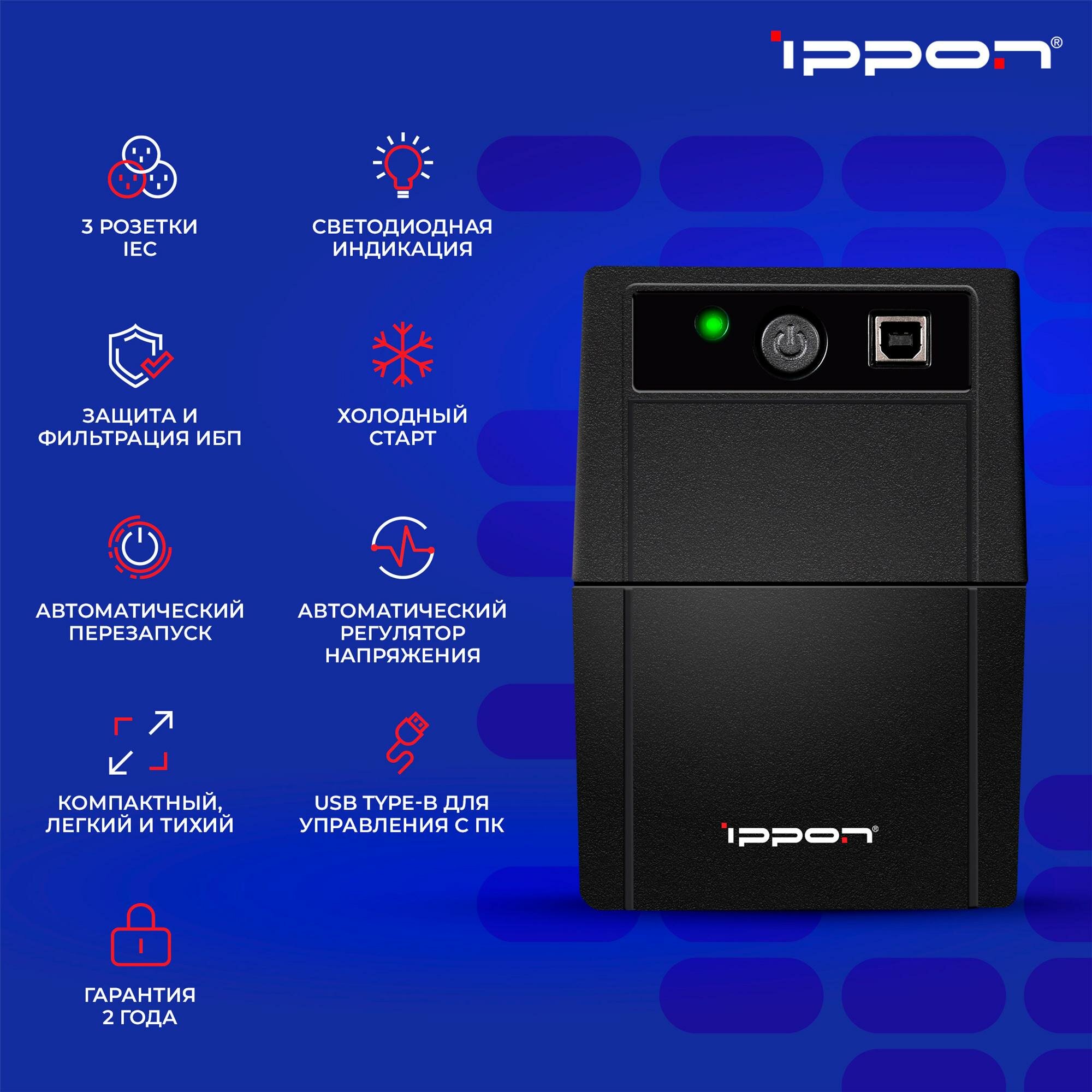 ИБП Ippon Back Basic 850 480Вт 850ВА черный