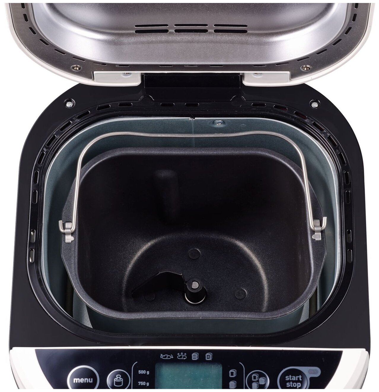 Можно отложить запуск, при этом дрожжи и всякие семечки не будут мокнуть, а упадут в тесто в нужный момент из отдельного контейнера. В меру шумная. В комплекте большой стакан для йогурта, мерный стакан и ложка. Можно приготовить тесто, творог из кефира и каши. Есть прозрачное окошко в крышке, можно подглядывать, как идёт процесс. |