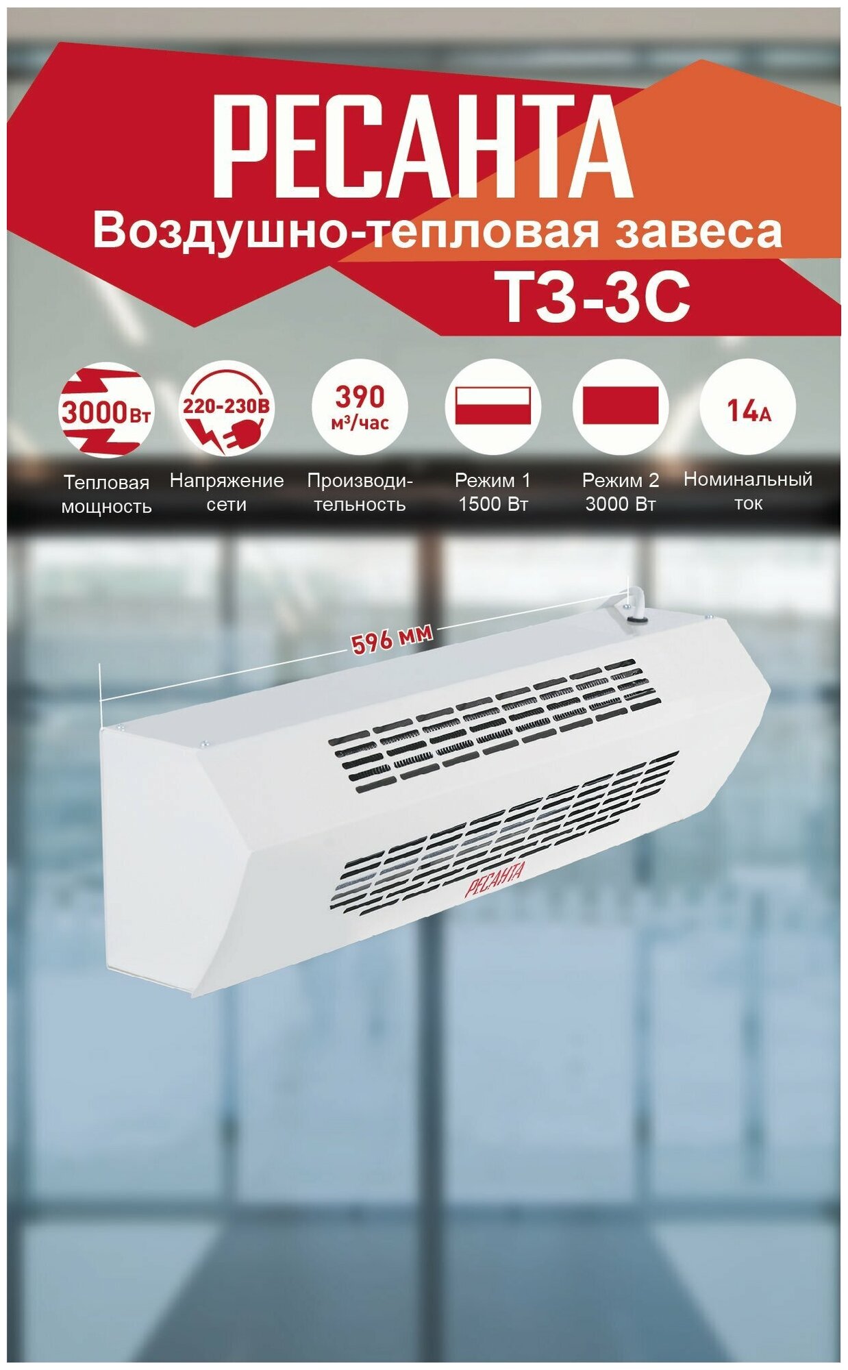 Тепловая завеса РЕСАНТА ТЗ-3С, 3000 Вт, настенная установка, управление на корпусе, белый Ресанта