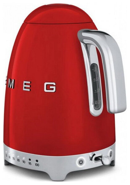 Чайники SMEG/ Стиль 50-х г., чайник электрический, 1.7 л , 2400 Вт, корпус из нержавеющей стали, регулировка температуры, красный