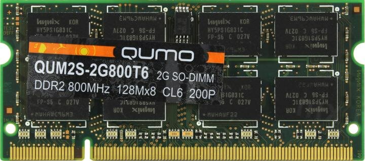 Qumo DDR2 SO-DIMM 800MHz PC-6400 CL6 - 2Gb QUM2S-2G800T6 интересное: