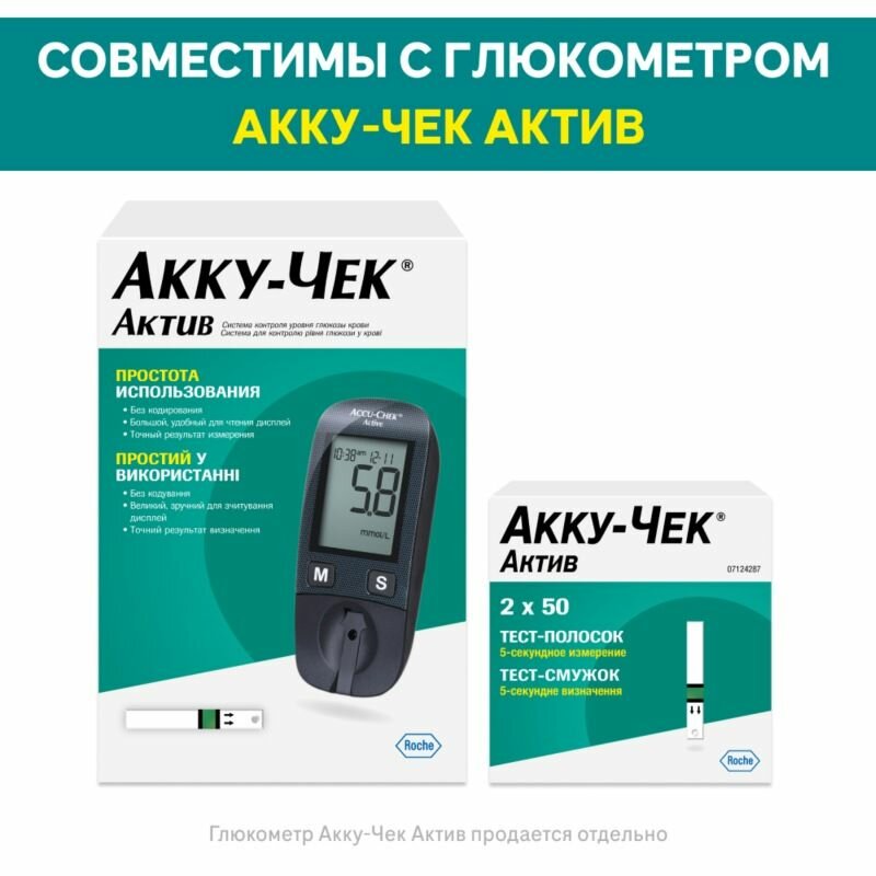 | Дополнительная информация | можно использовать только с глюкометром Акку-чек Актив и только вне организма пациента |