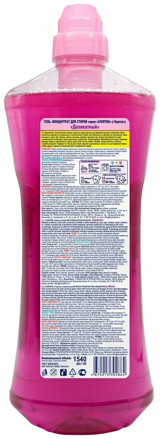 б/х_чиртон_гель-конц.д/стирки 1540мл_делик. 503017000