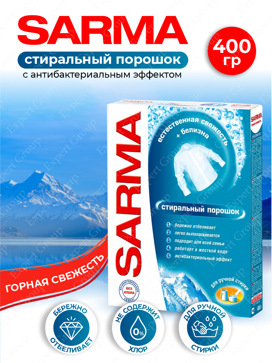 Стиральный порошок Sarma "Горная свежесть" свежесть + белизна, ручная стирка, 400 г