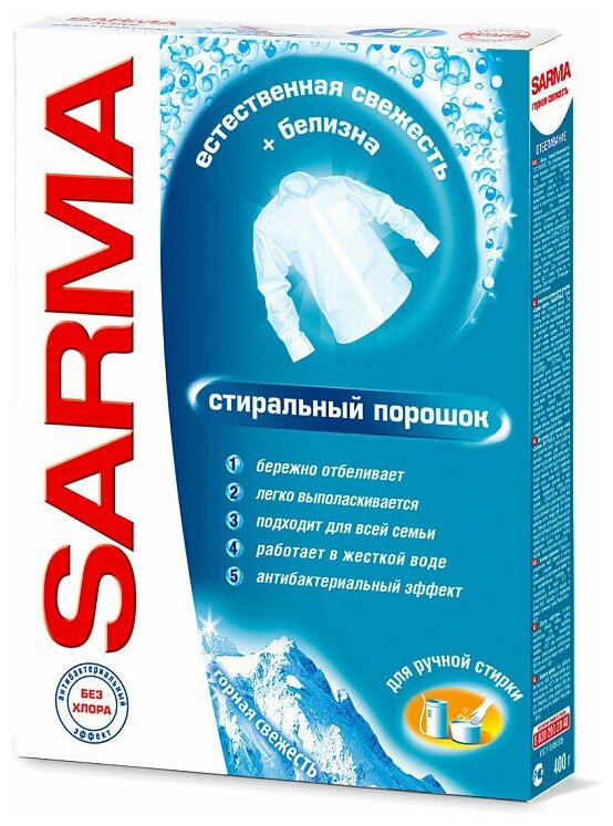 Sarma Стиральный порошок Sarma "Горная свежесть" свежесть + белизна, ручная стирка, 400 г