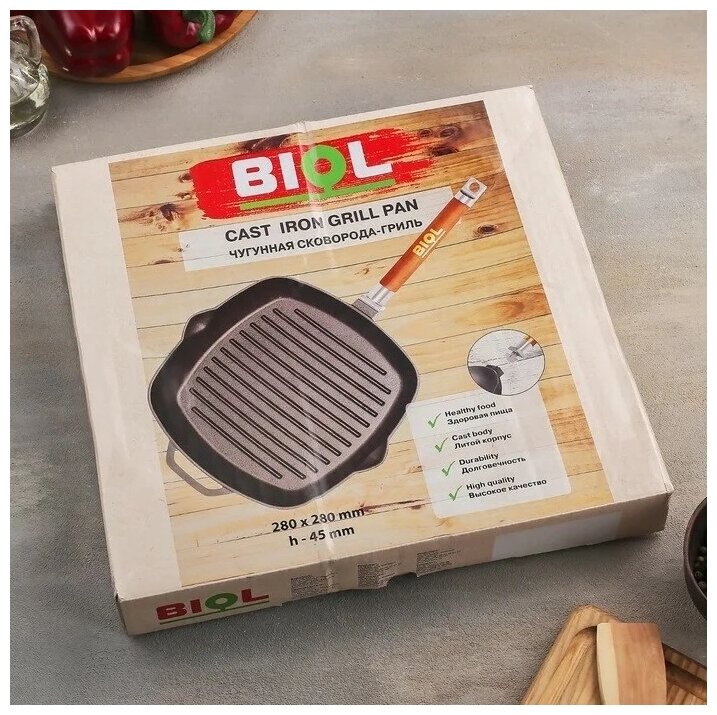 Сковорода гриль чугунная Биол 28*28см съемная ручка арт.1028