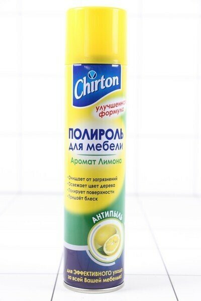 Ниже Вы можете прочитать отзывы на Полироль-антистатик для мебели Чиртон Антипыль-Лимон 300мл., ознакомится с подробными характеристиками, посмотреть интересные обзоры и фотографии на Полироль-антистатик для мебели Чиртон Антипыль-Лимон 300мл..
