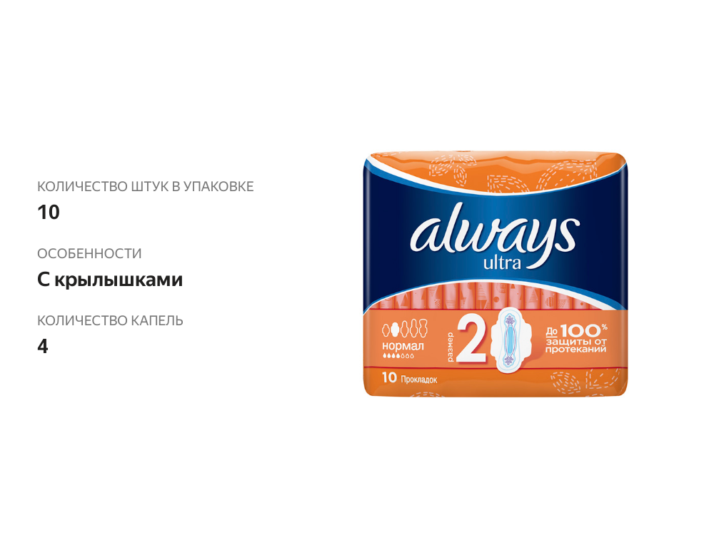 Always прокладки Ultra Normal Plus, 4 капли, 10 шт.