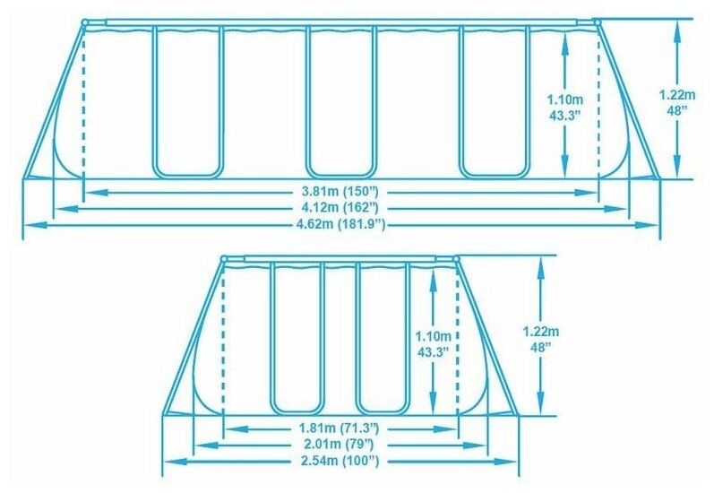 Каркасный прямоугольный бассейн, 201 см х 419 см х 122 см, Bestway 56456/56241