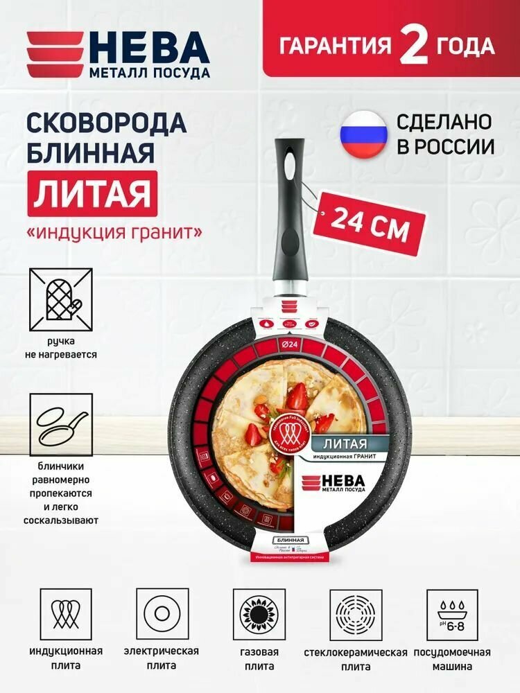Сковорода блинная нева металл посуда 59224 Ферра индукция, 24 см.