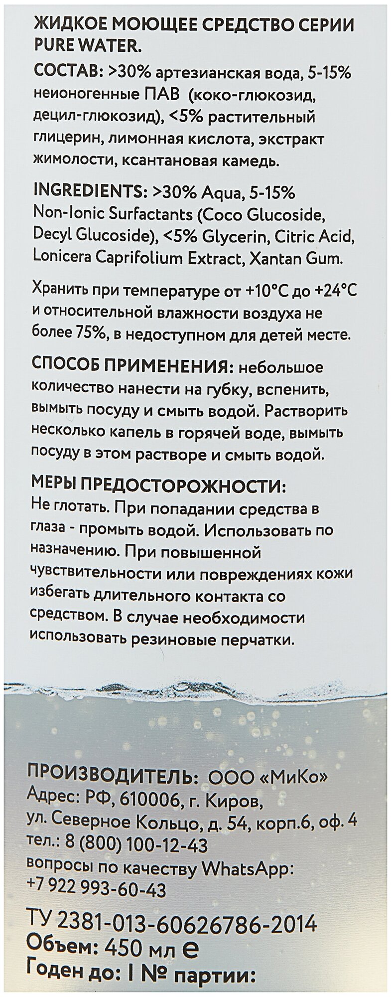 МиКо средство для мытья посуды гипоаллергенное "Pure Water" 450 мл