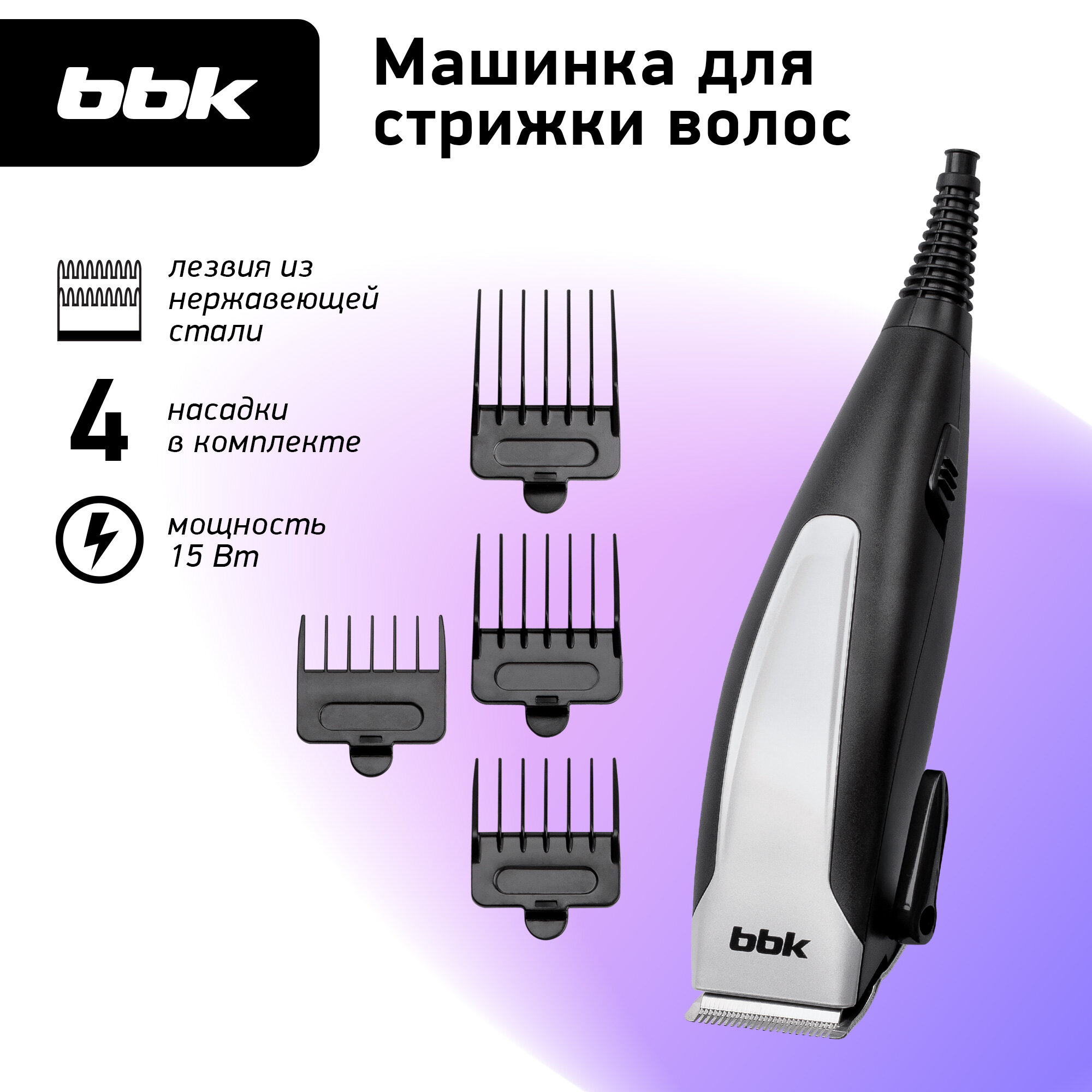 Машинка для стрижки волос BBK, 15Вт, черный/серебро, арт.BHK101
