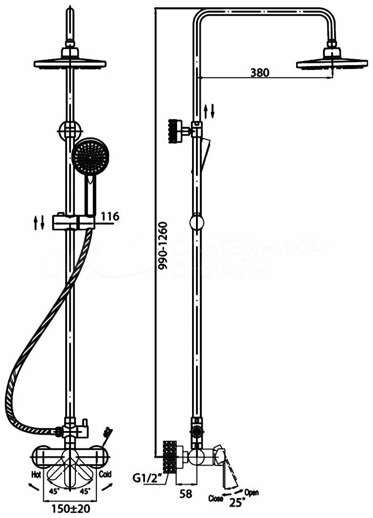 | Дополнительная информация | высота стойки для душа: 1260 мм |