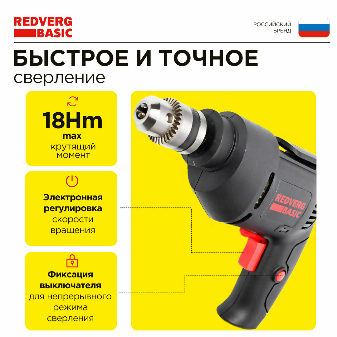Дрель RedVerg Basic D500 безударная интересное: