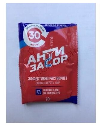 Средство гранулированное для удаления засора в трубах Антизасор, 70 гр