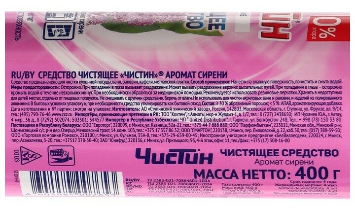 Ступинский химический завод (СХЗ) Чистящий порошок Чистин Сирень 400 гр