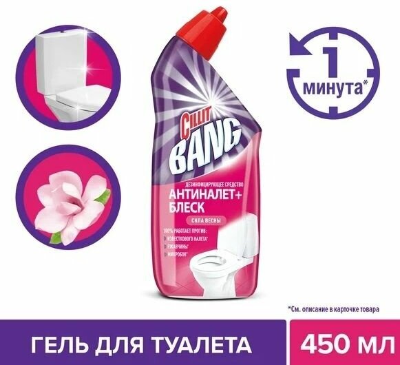 Cillit Bang Дезинфицирующее средство для туалета, Антиналет+Блеск, Сила весны, 450 мл.