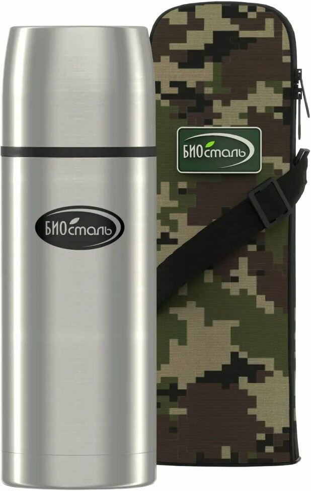 Термос биосталь Охота NBP-1000 B с термочехлом, 1,0л, серебристый