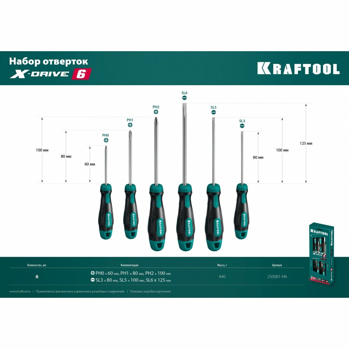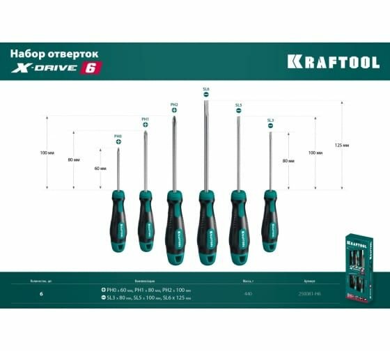 Набор отвёрток X-Drive, 6 шт. KRAFTOOL 250081-H6_z01