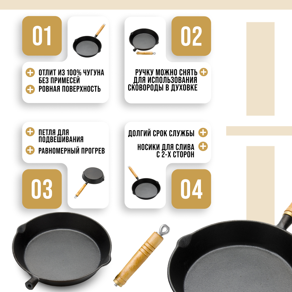 Сковорода чугунная 23см MayerBoch деревянная ручка 20515 KSMB-20515 интересное: