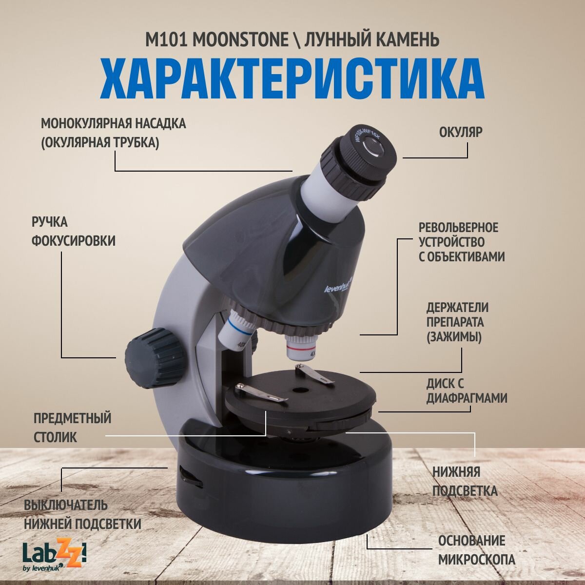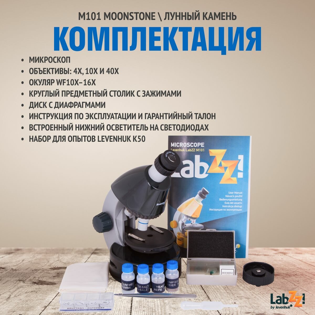 Микроскоп Levenhuk LabZZ M101 Moonstone\Лунный камень (RU)