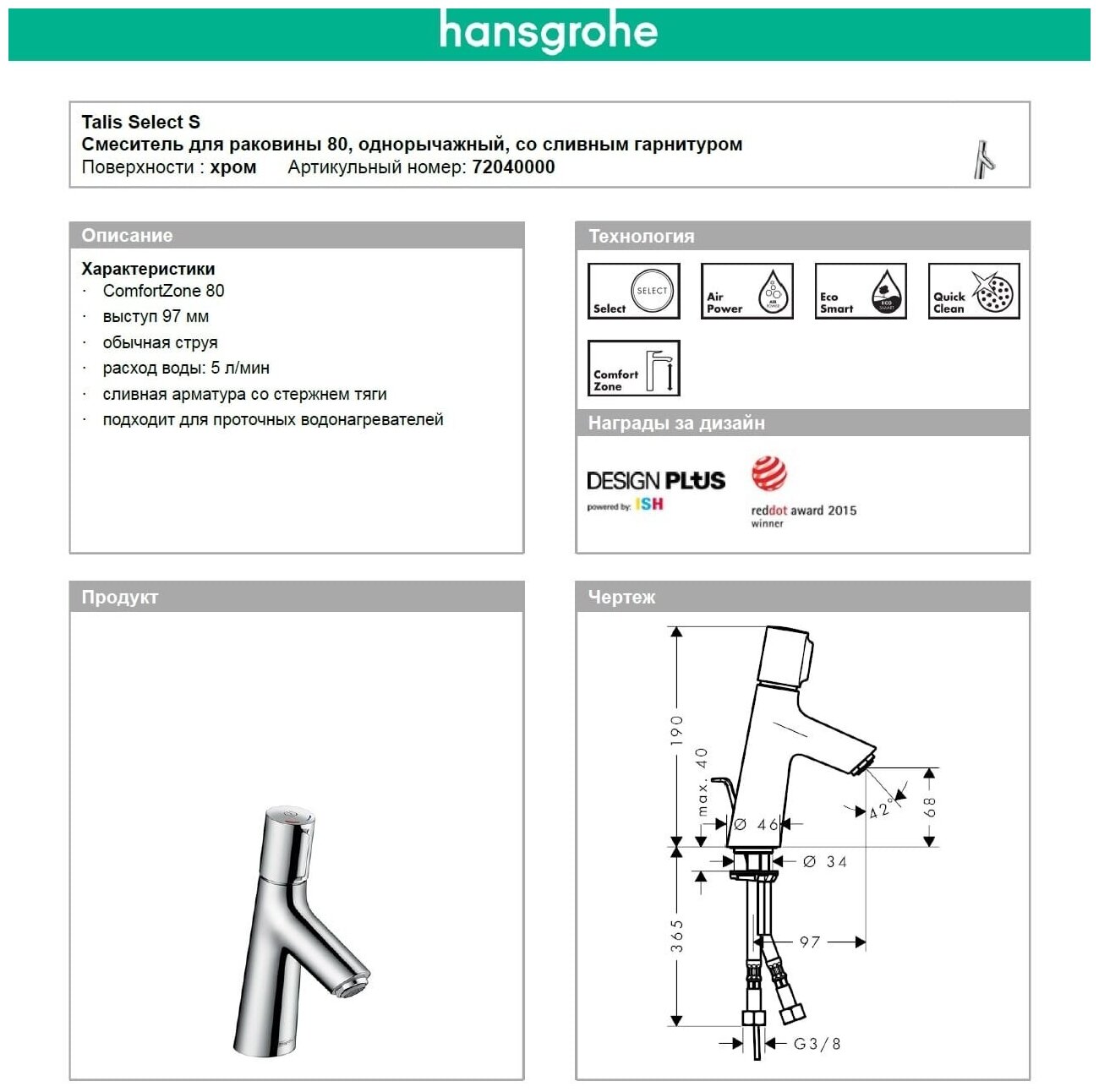 Ниже Вы можете прочитать отзывы на Hansgrohe Смеситель Hansgrohe Talis Select S 72040000 для раковины, ознакомится с подробными характеристиками, посмотреть интересные обзоры и фотографии на Hansgrohe Смеситель Hansgrohe Talis Select S 72040000 для раковины.