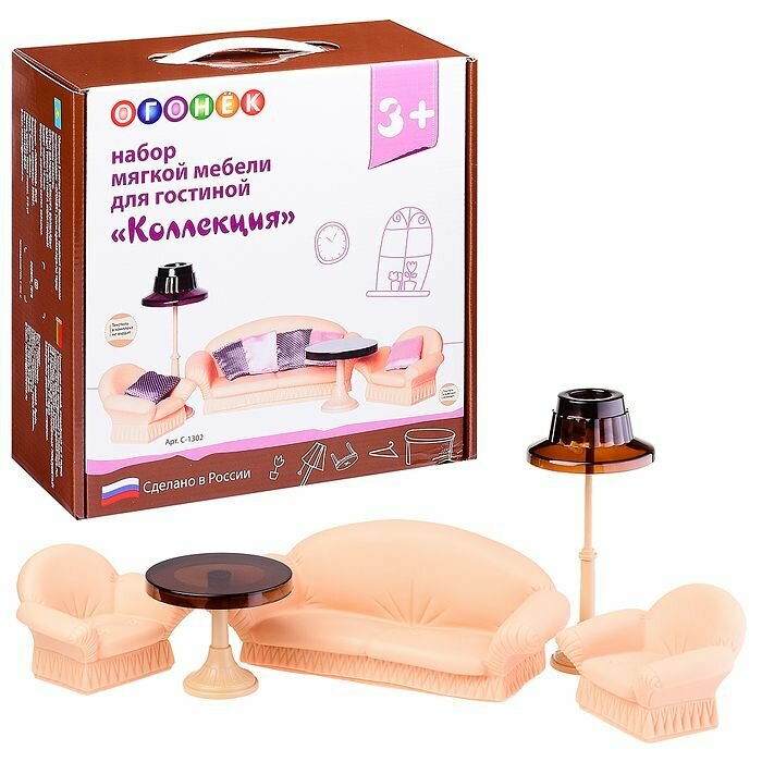 | Плюсы: | отличный кукольный набор, состоящий из дивана, кресел, торшера и столика |