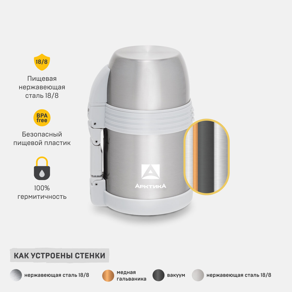 Арктика Термос для еды и напитков Арктика 205-1000 (1000 мл, серебристый)