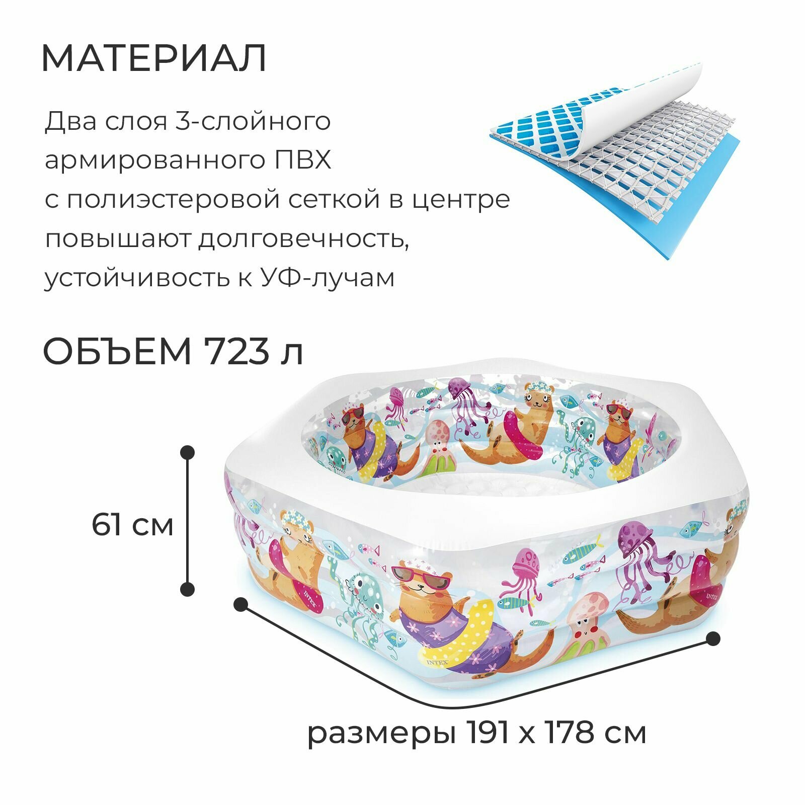 Шестиугольный надувной бассейн Риф Deluxe INTEX, надувное дно, 191х178х61 см, от 6 лет, 56493