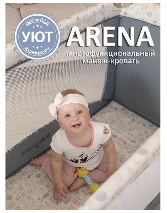 | Отзыв: | Манеж Babycare Arena – суперская вещь! Покупали через интернет, заказывали в приятном светло-коричневом цвете (очень практично, немарко и красиво выглядит). Манеж идет в комплекте с матрасиком, сумкой для переноски, москитной сеткой (очень понравилась, устанавливается эдаким куполом).