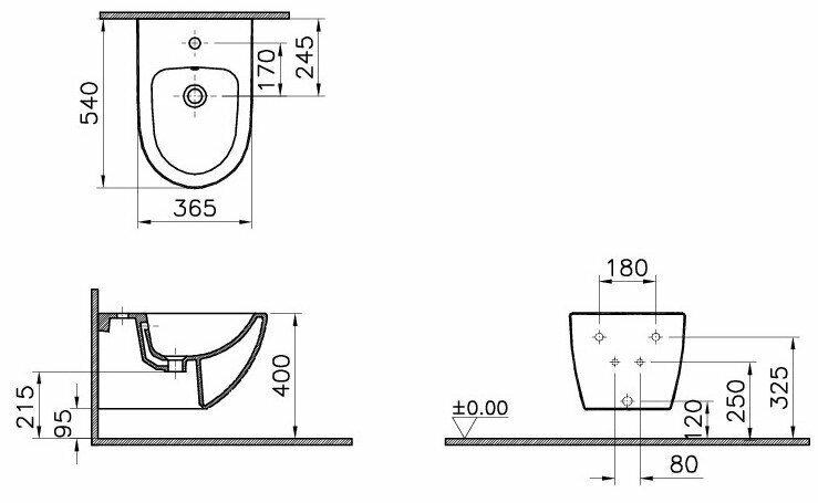 Биде подвесное Vitra Sento (365х540х400) с отверстием под смеситель 4338B003-1046 (4338B003-0288) интересное: