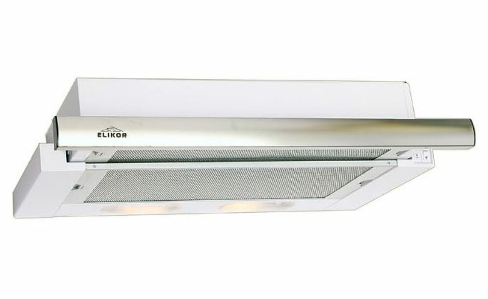 Вытяжка кухонная 45 см встраиваемая, 400 м3, цвет белый и нержавеющая сталь, ELIKOR Интегра 45П-400-В2Л, выдвижная 2 скорости, управление клавишное, 2 лампы накаливания